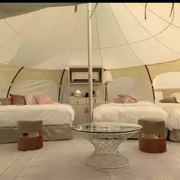 Each tent has a terrace where you can have a BBQ, so you can eat dinner and breakfast there!
