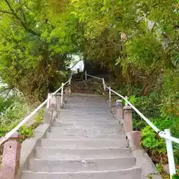 To get to the worship hall, you have to climb a steep cliff-like staircase