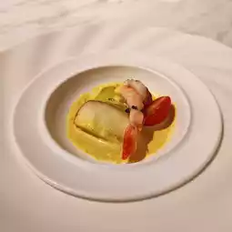1. Appetizer: Scallops and shrimp with curry yogurt (the sauce is very delicious and special)