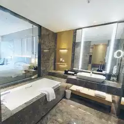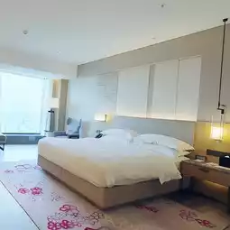 A king-size double bed, a work area, and a bathtub🛁The floor-to-ceiling windows offer a beautiful view of the Love River, which makes me feel very relaxed👍🏻I can also use the Executive Lounge to enjoy free breakfast, afternoon tea, and evening snacks. The service staff are very friendly and professional👏🏻There are MRT stations and night markets near the hotel, and transportation and shopping are very convenient. I think Kaohsiung Marriott Hotel is a hotel worth recommending, which gave me an unforgettable trip in Kaohsiung.