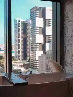 The bathroom upgrade is here! There are floor-to-ceiling windows next to the sink and bathtub, providing an unparalleled view. There is no need to fight over the sink when two people stay together, as the large mirror can show your best look. Bath salts are also available. InterContinental's detailed service is truly commendable! 🛁✨