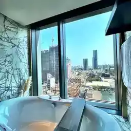 ✨️The room is located in a high-rise building, with a panoramic view of Kaohsiung city, and the night view is also charming! There is a small partition between the bathroom and the bedroom, which provides more privacy and you can close the door and enjoy a quiet bath. The bath products are from Swedish brand BYREDO, which has a fresh and comfortable smell💕