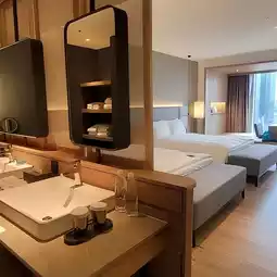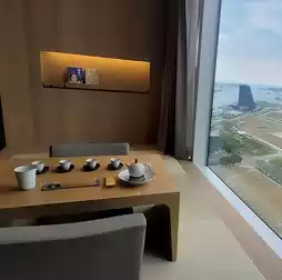 The room I stayed in this time was a Japanese-style room, with simple and comfortable decor, equipped with tatami bedding and a capsule coffee machine. In front of the window, there is a small Japanese-style room with Chinese tea sets and snack sets, where you can enjoy tea and snacks while admiring the view outside! Additionally, the bathroom is designed with a wet and dry separation and is also equipped with high-end amenities!