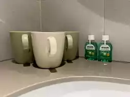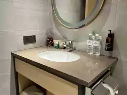 Although the bathroom does not have a bathtub, it is still comfortable and bright overall.