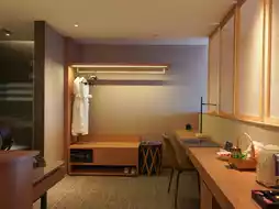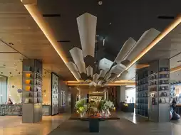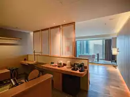 The hotel's design is unique, different from the solid wall partitions of traditional buildings.