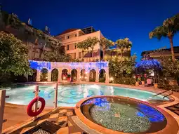 Especially the night view of the outdoor swimming pool is stunning.