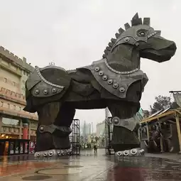 The E-Da Theme Park consists of 3 areas, namely Area A "Acropolis", Area B "Santorini Mountain City" and Area C "Troy Castle", each area boasting unique rides and entertainment activities. Among them, Troy Castle in Area C features an indoor playground for visitors to enjoy in any weather conditions, however mostly for children.