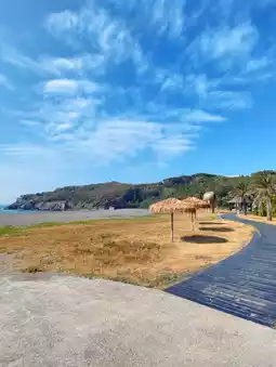 Even without waiting until night, the scenery before evening is still captivating. The pure white lighthouse overlooks the entire Cijin coastline, and there is even a café nearby, making it the only lighthouse attraction that offers food and beverages. The scenery here is reminiscent of Busan, South Korea.