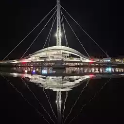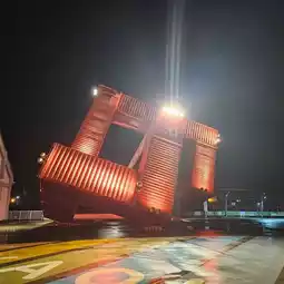 The first horizontal swing bridge in Taiwan, which is the longest swing bridge over a harbor in Asia, completes its rotation within 3 minutes.