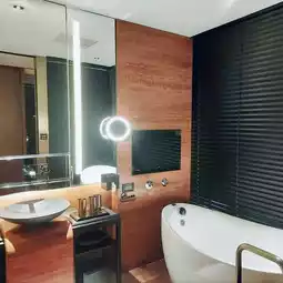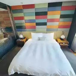 The room is simple and modern in design, with warm colors as the main theme. The overall lighting is sufficient and it is equipped with high-end bedding supplies, with moderate size and softness! The bathroom has a large bathtub with separate wet and dry areas, making it a luxurious five-star accommodation!