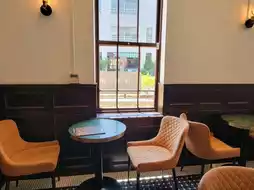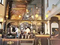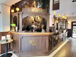 Shinbin Ekimae was formerly Sanwa Bank. After revitalizing a century-old monument, it has now become a cafe. The counter and vault are still preserved, which is worth a visit.