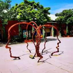 Sculptures with simple lines; red wolves with bared fangs but not angry; and giant robots all attract different groups of people to check in.
