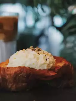 I ordered a thick Danish slice with egg salad ~ I loved it! Although the egg salad looks ordinary, it adds a lot of points when paired with the thick slices at the bottom. The thick slices are baked crispy and have a slight maple syrup sweetness. It's delicious. I like the coffee too. You can choose light or medium-dark brew. If the weather is not too hot, it's actually very comfortable to sit outside. Recommended