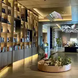 The hotel's design is modern and elegant. When entering the lobby, the first thing that catches your eye is a spectacular wall of books, which displays nearly 20,000 books. It makes people feel the strong cultural atmosphere and is very good for taking photos and making business cards.