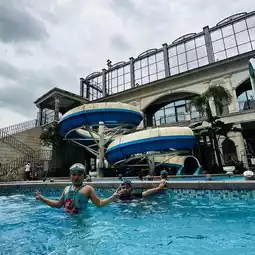 We set off from Taoyuan early on Saturday morning and arrived at the hotel at around 10:30. It was too early, so we couldn’t check in, but we could store our luggage first. With the reservation number, we could enjoy all the hotel facilities, so we went straight to the swimming pool to play in the water! The outdoor swimming pool also has a water slide, which is watched by lifeguards. Only one person can slide down at a time, and the next person can start sliding after confirming that the person has slid down. There are also many SPA massage facilities, and the indoor pool also has various massage SPA facilities.