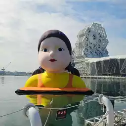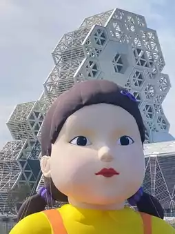 There has been a wave of craze in Kaohsiung Port recently because a giant version of the "Squid Game" doll appeared at the port! This 10-meter-high giant installation is located near the port and floats on the water. It recreates classic scenes from the drama and allows people to enter the plot in an instant.