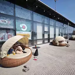It was rebuilt from the original Gushan Fishery Market and reopened on March 22. This time, many Japanese brands have been gathered here in the hope of attracting some Japan-loving fans. The outdoor area has also been changed to a desert style with small outdoor tents and seats on the gravel for tourists to rest, and is matched with several art installations. There are also several lazy chairs on the trail near the pier for lying down and dining, and the overall layout has changed a lot compared to before. 20250323
