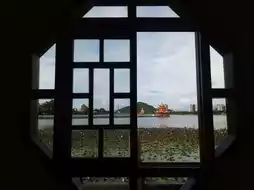 There are various buildings on the lakeside, such as the Confucius Temple, tower, shrine, and giant statue.