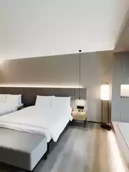The bed is moderately soft and hard, and the blackout curtains are very comfortable to sleep in 😴