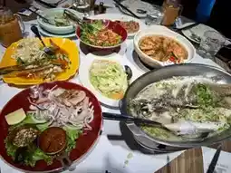 Today, I brought four kids to Thai Town restaurant at Dream Mall (Blue Whale Pavilion B1) for lunch. The five of us ordered a six-person set menu, which was incredibly rich and satisfying. It included six cups of Thai milk tea, three desserts (Mobi Cha ice, taro-flavored black sticky rice, and assorted fruit ice), original mooncake, chef's seafood and vegetable salad, spicy stir-fried pork, green curry coconut chicken, chef's BBQ pork neck, shrimp vermicelli pot, steamed fish with lime, flavorful pepper chicken, spicy stir-fried cabbage, hot and sour seafood soup, and Thai jasmine rice. The ingredients were fresh, the flavors were amazing, and we had a delightful dining experience. The staff were friendly and attentive, making it a fantastic restaurant worth recommending to everyone.