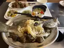 Today I went to (Shangpin Coffee) for lunch (three cups chicken set meal) (plum sea bass) (fresh fish set meal)