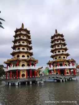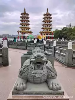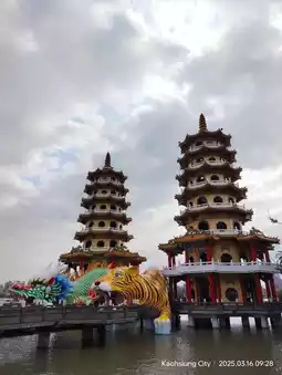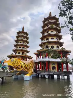 Aunt Aom complained... Dragon and Tiger Pagodas - Chiji Temple This temple can be reached by taking the KMRT and getting off at HRS Zuoying Station or by taking the TRA and getting off at Zuoying Station. When I came, I took the TRA and walked for about 20 minutes. When I arrived, wow, it was so impressive. I saw the twin pagodas standing tall behind them. When I got closer, I saw a tiger and a dragon standing together. On the opposite side is the Chiji Temple, which is just as beautiful. Whether it's the sacred objects, the stucco sculptures, the ceiling, or the walls, it's all magnificent. I recommend coming here. Next time I have a chance, I'll come to see the night view. The light should be really beautiful. #GetDiscountsWithoutFate #Kaohsiung #DontMiss #Taiwantrip #KhaoYaiTravel #Zuoying