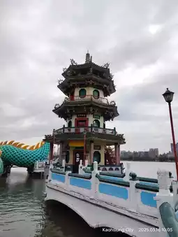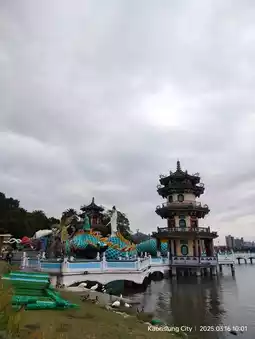 ป้าอ้อมบ่นไป ... ศาลาฤดูใบไม้ผลิและฤดูใบไม้ร่วง (Spring and Autumn Pavilions) อยู่ไม่ไกลจากเจดีย์มังกรเสือ-วัดฉือจี้ เป็นศาลาที่เงียบสงบอยู่กลาง Lotus Pond ขึ้นไปดูวิวจะมองเห็นทั้งเจดีย์มังกรเสือและวัดจั่วอิ๋งหยวนตี้ (Zuoying Yuan EZdi) Zuoying Yuandi Temple ด้านหน้าก็จะเป็นศาลาที่มีมังกรกับเจ้าแม่กวนอิมที่มีทางลอดเดินดูภาพฝาผนังเล่าเรื่องตำนานต่าง ๆ ตรงข้ามกันคือ Zuoying Chiming Temple แสะเข้าไปสักการะเจ้าแม่กวนอิม มีกล่องเซียมซีขนาดใหญ่ ที่เคาะไม้ลวดลายสวยงาม ปี่เซียะที่แกะสลักไว้วิจิตรมาก แบะประติมากรรมต่าง ๆ ที่น่าสนใจ