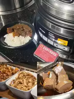 There are salad bars, noodles, golden stewed pork rice, sukiyaki beef rice bowl, Angus black beef curry rice,