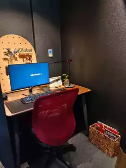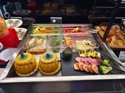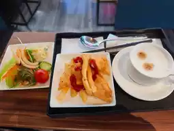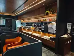 The lounge provides a variety of offerings, including hot meals, salads, beverages, desserts, and even ice cream. Guests can also scan a QR code to order freshly prepared dishes from the menu, all of which are highly recommended. Additionally, there is a business space equipped with computers and two private rooms for personal privacy. The only downside is the lack of a restroom within the lounge, but the public restroom is conveniently located just a few steps away to the left after exiting.