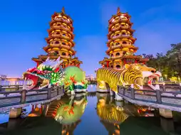 You may know that the correct way to go to the Dragon and Tiger Tower is to "enter from the dragon's mouth and exit from the tiger's mouth", which symbolizes "turning bad luck into good luck". The spiral staircases and murals in the tower narrate various Buddhist stories and cause and effect reincarnation, and standing on the top of the tower, you can overlook the entire Lotus Pond and the city scenery of Zuoying.