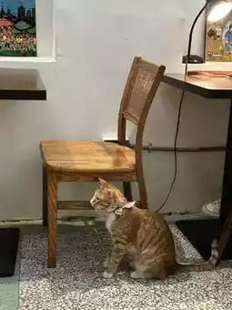 After ordering at the counter, you have to go through the alley behind to the second floor.