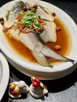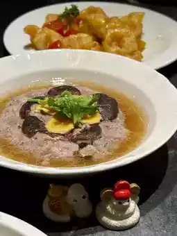 I ordered the classic seafood soup, which was absolutely delicious 😋. Adding black vinegar enhanced the flavor even more, and I couldn't stop eating it bite after bite. The salted egg yolk steamed pork patty was incredibly tasty, especially when paired with white rice—it was even better 😋. The steamed threadfin fish with preserved vegetables was tender, juicy, and full of flavor—a true delicacy.