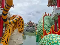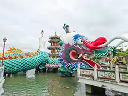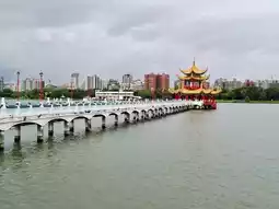 Liánchí Tan is an artificial lake located on the eastern side of Zuoying District in Kaohsiung. Opened in 1951, it's famous for its beautiful lotus flowers and numerous temples surrounding the lake, including the Spring and Autumn Pavilion (春秋閣), the Dragon and Tiger Pagoda (龍虎塔), and the Confucius Temple (孔廟).