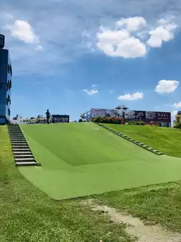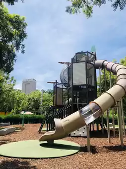 Exit 1 of Kaohsiung MRT Central Park Station leads directly to the lush greenery of Central Park! The highlight is the long, winding slide 🛝, which is incredibly fast and thrilling, and there's also a spacious grass slide for fun. The park also features a rest area and a dreamy fountain, perfect for a relaxing stroll and a popular photo-op. Whether you're with children or friends 👫, you'll find fun and a relaxing time here!