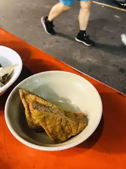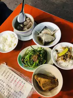 I also paired it with a braised pork rice dish. The perfectly balanced braised pork was salty and fragrant, complementing the rice; a plate of crispy blanched vegetables, simply drizzled with soy sauce, was delicious; and a perfectly seasoned herbal fish head, braised in a savory broth. Sitting on a small stool in front of the stall, watching the people come and go, enjoying these simple yet soulful dishes, I was instantly filled with a strong sense of local authenticity. This is the most charming flavor of a Taiwanese night market!