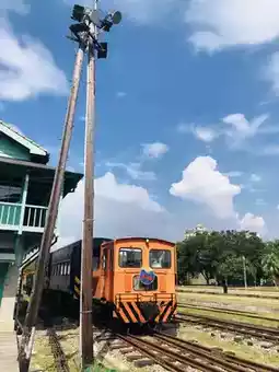 Exit Exit 2 of Kaohsiung MRT Hama Star Station and you'll instantly step into the surprising world of the Light Rail Park! Like an open-air museum, it showcases miniature light rail trains from different eras and styles, each telling the story of the city's evolution. The most eye-catching feature is definitely the Banana Train installation—at night, it shimmers golden and magical under lights, while during the day, you can clearly see its adorable banana-holding figure, a lively and soothing sight! Surrounding the park are more classic trains and historical explanations, making any photo opportunity nostalgic and fun. This is a must-see for railway fans and influencers! 🚃📸