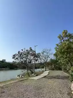 Walking along the gravel path, the water reflects the shadows of the trees and the silhouette of the city. This section is the most relaxing: the breeze pushes the water into grids of light, and encountering leafless trees feels like walking through a painting.