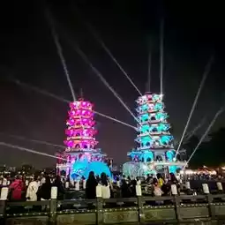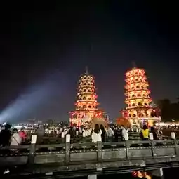 The Dragon and Tiger Pagodas are located in the Lotus Pond Scenic Area in Zuoying District, Kaohsiung. They are one of the city's renowned religious and tourist attractions, showcasing rich Eastern cultural characteristics. The pagodas are connected by a zigzag bridge and harmoniously complement the pond's scenery, offering a picturesque view.