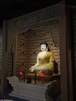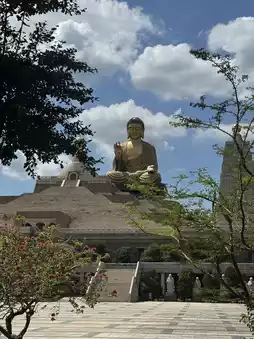 Entering the grounds, I was greeted by magnificent Buddha statues and expansive pathways. A gentle breeze blew, and sunlight caught the golden tiled roof, shimmering brightly. The footsteps of tourists were soft, and the sound of bells echoed slowly in the distance—the whole thing was as still as a painting.