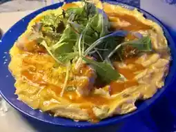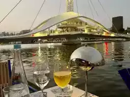 I've been living in Kaohsiung for 11 months. My favorite restaurant, and the one with the most beautiful views in my mind, is Yongxin Floating Island. Kaohsiung has the most beautiful scenery. Sitting outside the restaurant on the banks of the Love River, under the Dagang Bridge, enjoying the view and delicious food, it's a happy time. Tonight, I invited Xiao Luo, who works in Kaohsiung from Tamsui, to dinner at Yongxin Floating Island. The beautiful scenery made him very happy. I'm a meat-only person, so I ordered a charcoal-grilled rib-eye steak. He ordered seafood sesame noodles, traditional fried spareribs, oyster omelet, and carbon-powder fried whitebait. We were in a good mood, both guests and hosts had a great time, and the meal was a delight. The young waiter was friendly and enthusiastic, and he explained the dishes to him in detail, which made Xiao Luo feel the warmth of Kaohsiung. It's a great restaurant worth recommending.