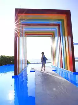In addition to the classic rainbow frame, there is also a white tent where you can take photos.