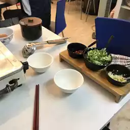 You choose your broth, meat, and toppings, then sit at a round table and cook your own hot pot. It's so popular that you'll often find yourself waiting in line during lunch or dinner hours.