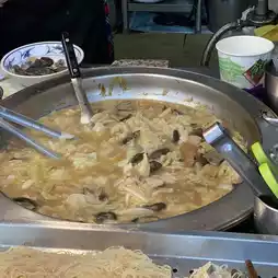 This amazing snack bar is not listed on Google, but I noticed that this one has the best business so I didn't consider other options. I originally wanted to order the braised cabbage, but then grandma said a bowl of vegetable soup was 60 yuan. The braised pork rice is more like braised pork rice with gelatinous but non-greasy fat. After eating it, your mouth is full of the aroma of braised pork. You can also visit the Guandi Temple here. There are many people on the first and second floors on New Year's Day.