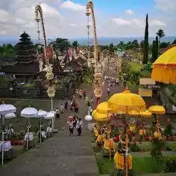 As in any other temples in Bali, visiting Besakih Temple requires proper clothes such as sarong, sash and a proper top. If you don’t bring your own sarong or sash, you can rent it in the area. During the day, the temple will be packed with visitors and pilgrims, therefore, for a more convenient visit, you might want to go to Besakih in the morning or the evening.