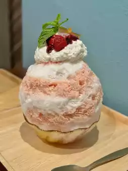 The fluffy ice was filled with tea panna cotta and lotus cookies, so it was a shaved ice with a different texture 💗