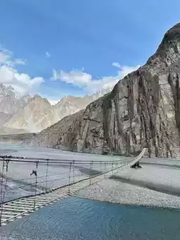 Crossed the legendary (and slightly terrifying) Hussaini Suspension Bridge with Passu Cones towering in the distance.