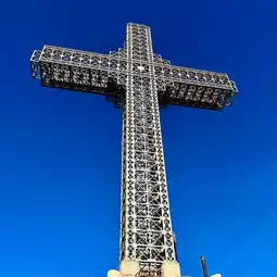 Hiking to the **Millennium Cross** atop Vodno Mountain, I got chased by a VERY determined stray dog. Named him Sir Barksalot. He followed me halfway down, then ditched me for a guy grilling sausages. Priorities. 🐕🌭