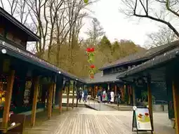 The small town that appears in the forest is lined with 16 shops and restaurants 😊 It's a cute town and a photogenic spot!