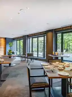Breakfast is another affair to remember. Fresh veggies and a tomato juice that packs the essence of tomato in every sip, alongside a menu with choices like Eggs Benedict, peach pancakes, or a Japanese set, each dish is a testament to careful seasoning. Don't miss their original yogurt, creamy with a gentle tang and a hint of sweetness, best enjoyed while overlooking the lush courtyard.