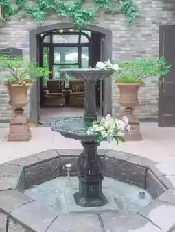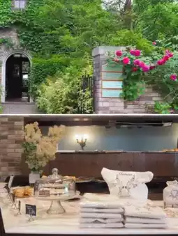 There are roses blooming inside the cafe, and it's in a great location!